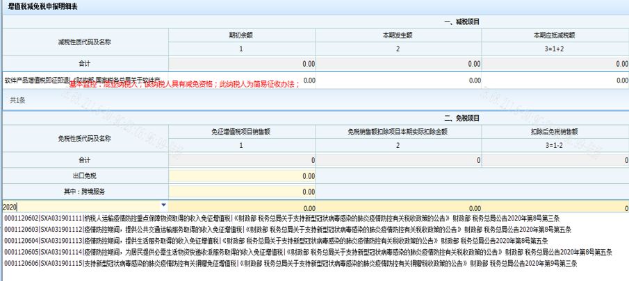 第二步:在《增值税减免税申报明细表》中选择对应的免税代码,填写相关列次。
