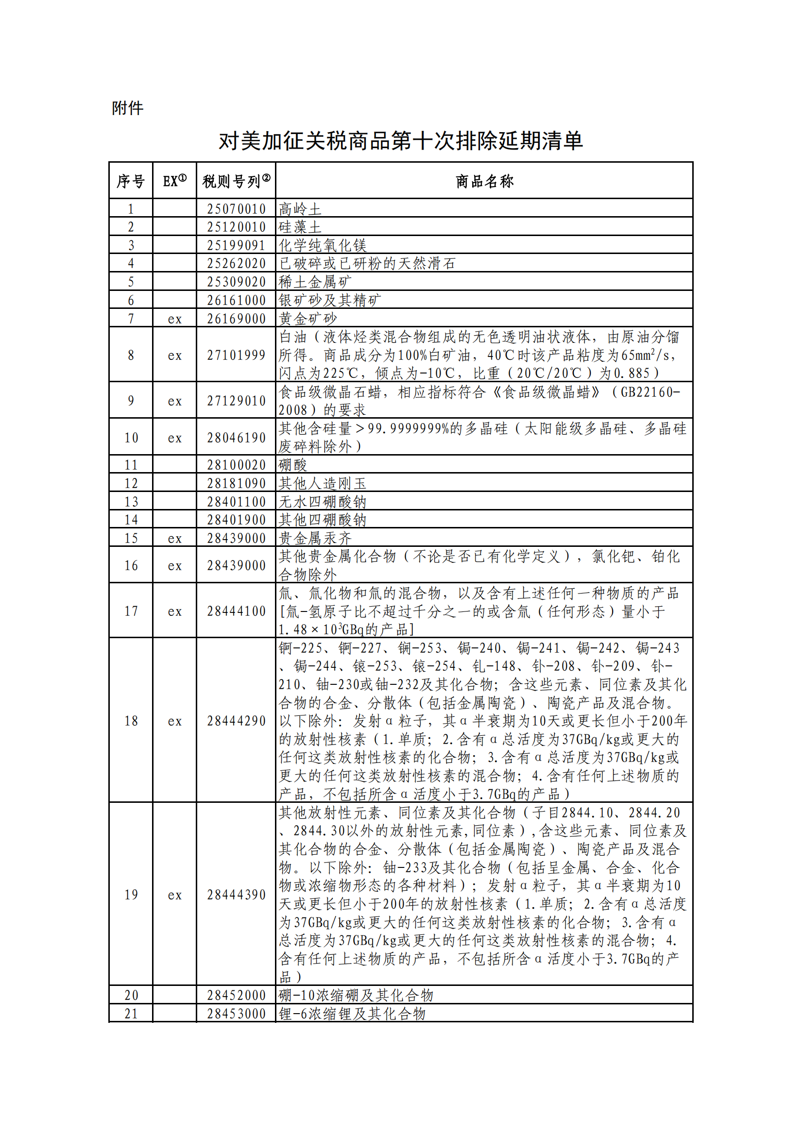 国务院关税税则委员会公布对美加征关税商品第十次排除延期清单